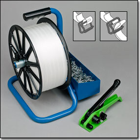 nuetzliches Zubehoer: Verschlusshuelsen, Scheeren zum Durchtrennen von Umreifungsbaendern, Palettisierhilfen, Bandfuehrungsscheiben